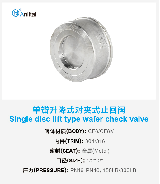 单瓣升降式对夹止回阀Single disc lifting wafer check valve